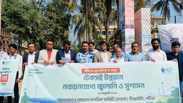 জ্বালানি খাতে দুর্নীতি প্রতিরোধ ও সুশাসন নবায়নযোগ্য জ্বালানির রূপান্তরে কার্যকর পদক্ষেপ ও রাজনৈতিক অঙ্গীকার গ্রহণের দাবী আজ ২৬ জানুয়ারি ২০২৬ সচেতন নাগরিক কমিটি (সনাক)-টিআইবি পটিয়ার উদ্যোগে আন্তর্জাতিক ক্লিন এনার্জি দিবস ২০২৬ উপলক্ষ্যে পটিয়া উপজেলা পরিষদের সম্মুখে চট্টগ্রাম-কক্সবাজার মহাসড়কে “জ্বালানি খাতে