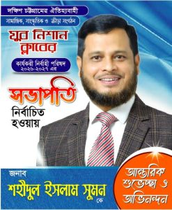 দ্বি-বার্ষিক ২০২৬–২০২৭ কার্যকরী পরিষদ নির্বাচনে সভাপতি নির্বাচিত হলেন , বাংলাদেশ সুপ্রীম কোর্ট এর আইনজীবী ওদায়রা জজ আদালত,চট্টগ্রাম এর অতিরিক্ত পিপি অ্যাডভোকেট শহীদুল ইসলাম সুমন।তিনি নির্বাচিত হওয়ায় তার এলাকায় বইছে খুশির জোয়ার।