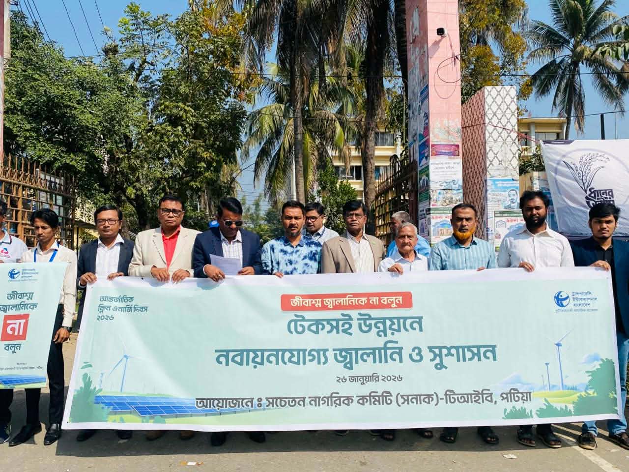 আজ ২৬ জানুয়ারি ২০২৬ সচেতন নাগরিক কমিটি (সনাক)-টিআইবি পটিয়ার উদ্যোগে আন্তর্জাতিক ক্লিন এনার্জি দিবস ২০২৬ উপলক্ষ্যে পটিয়া উপজেলা পরিষদের সম্মুখে চট্টগ্রাম-কক্সবাজার মহাসড়কে “জ্বালানি খাতে দুর্নীতি প্রতিরোধ করে সুশাসন নিশ্চিত করে নবায়নযোগ্য জ্বালানির রূপান্তরে কার্যকর পদক্ষেপ ও রাজনৈতিক অঙ্গীকার গ্রহণের জোরালো দাবীতে” জীবাশ্ম জ্বালানিকে না বলুন, চাই: টেকসই উন্নয়নে নবায়ন যোগ্য জ্বালানি ও সুশাসন শীর্ষক মানববন্ধন কর্মসূচি পালিত হয়।